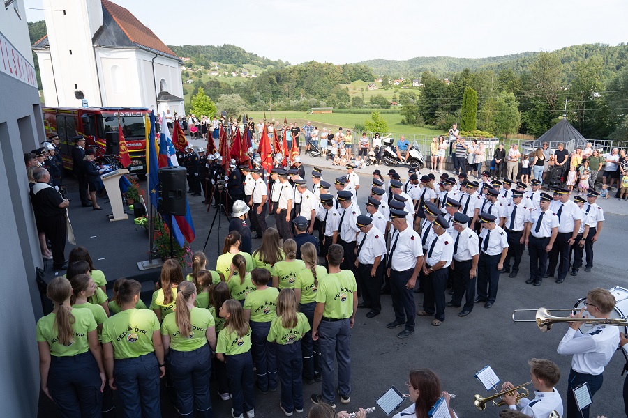 Vrhunec slovesnosti je bil uradni prevzem nove gasilske avtocisterne GVC-3, ki temelji na podvozju Scania s štirikolesnim pogonom in avtomatiziranim menjalnikom, kar zagotavlja izjemno zmogljivost. Vozilo s 6.400-litrskim rezervoarjem za vodo in sodobno opremo (nadtlačni prezračevalnik, motorna žaga, elektro agregat, reflektorji, izolirni dihalni aparati) predstavlja pomembno pridobitev, vredno 245.000 €. Trak sta prerezala župan in predsednik društva, ključe pa sta glavnemu vozniku Jerneju Zibelniku predala poveljnik GZ Dolomiti Andrej Slovša in poveljnik PGD Dvor Primož Zibelnik. Vozilo je blagoslovil domači župnik Bogdan Oražem, kar simbolizira željo po varni vrnitvi iz vseh intervencij.