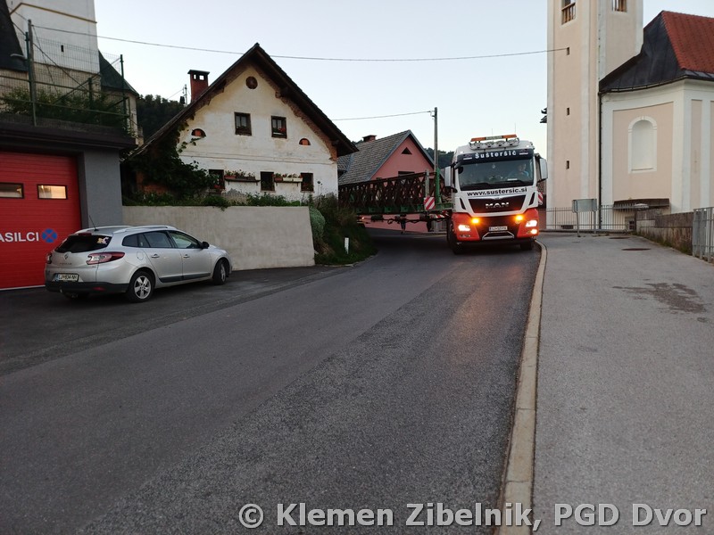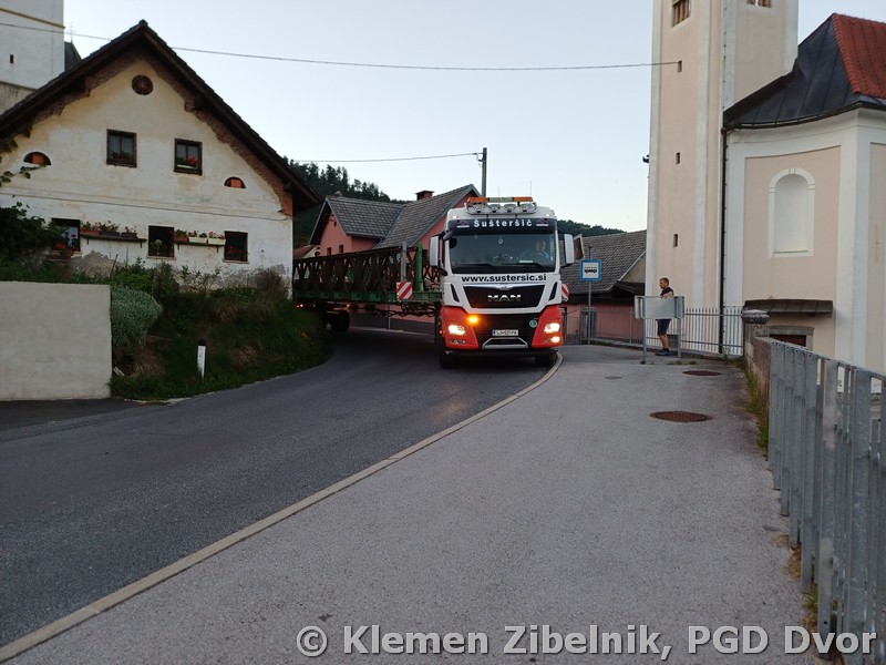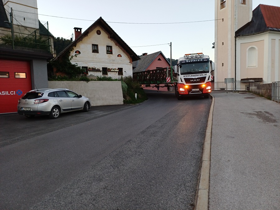 Nenavaden obisk: Montažni most mimo našega gasilskega doma